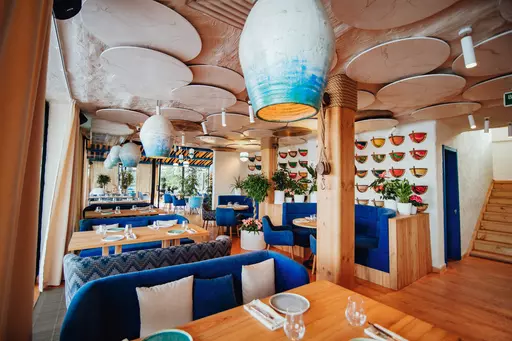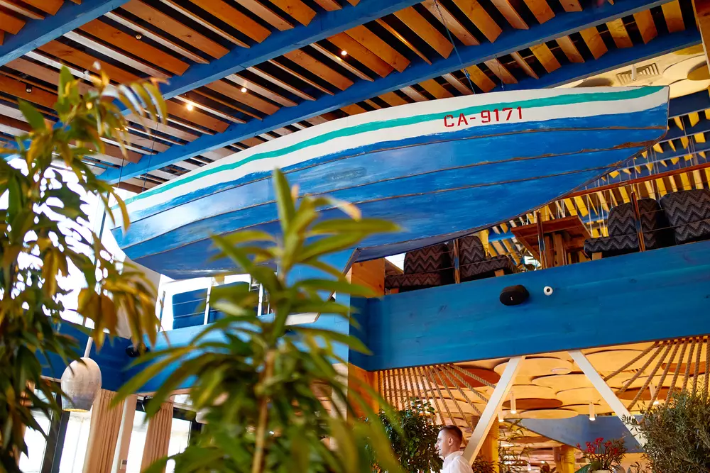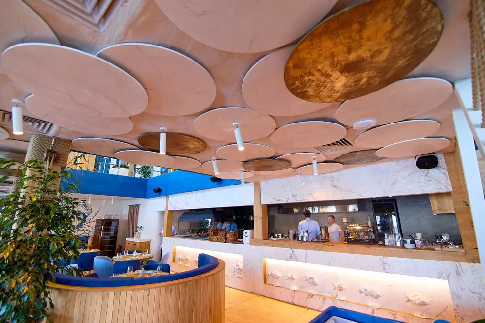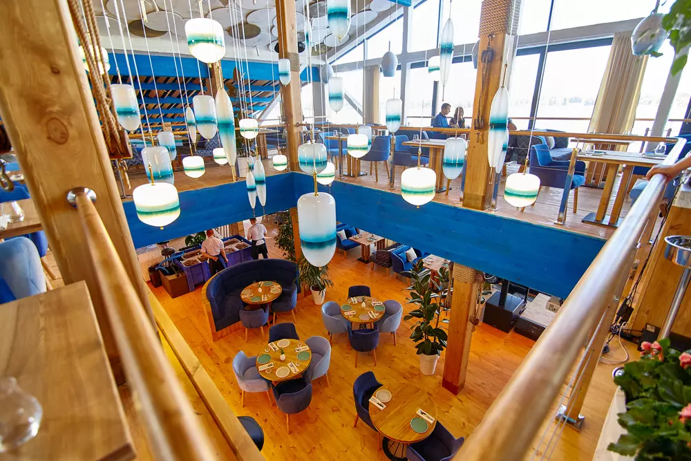 Меню відображає атмосферу ресторану та надихає на відпочинок біля води з сім’єю, друзями або відзначити важливий привід. Від тропіків у спекотний літній день до смачно просмаженого стейку на вечерю, від домашнього обіду до уточненого бранча за келихом вина. І звичайно ж нескінченний обрій води так і вмовляє вас замовити устрицю чи апетитну рибу – гра фарб, смаків та ароматів у авторському виконанні шеф-кухаря ресторану.